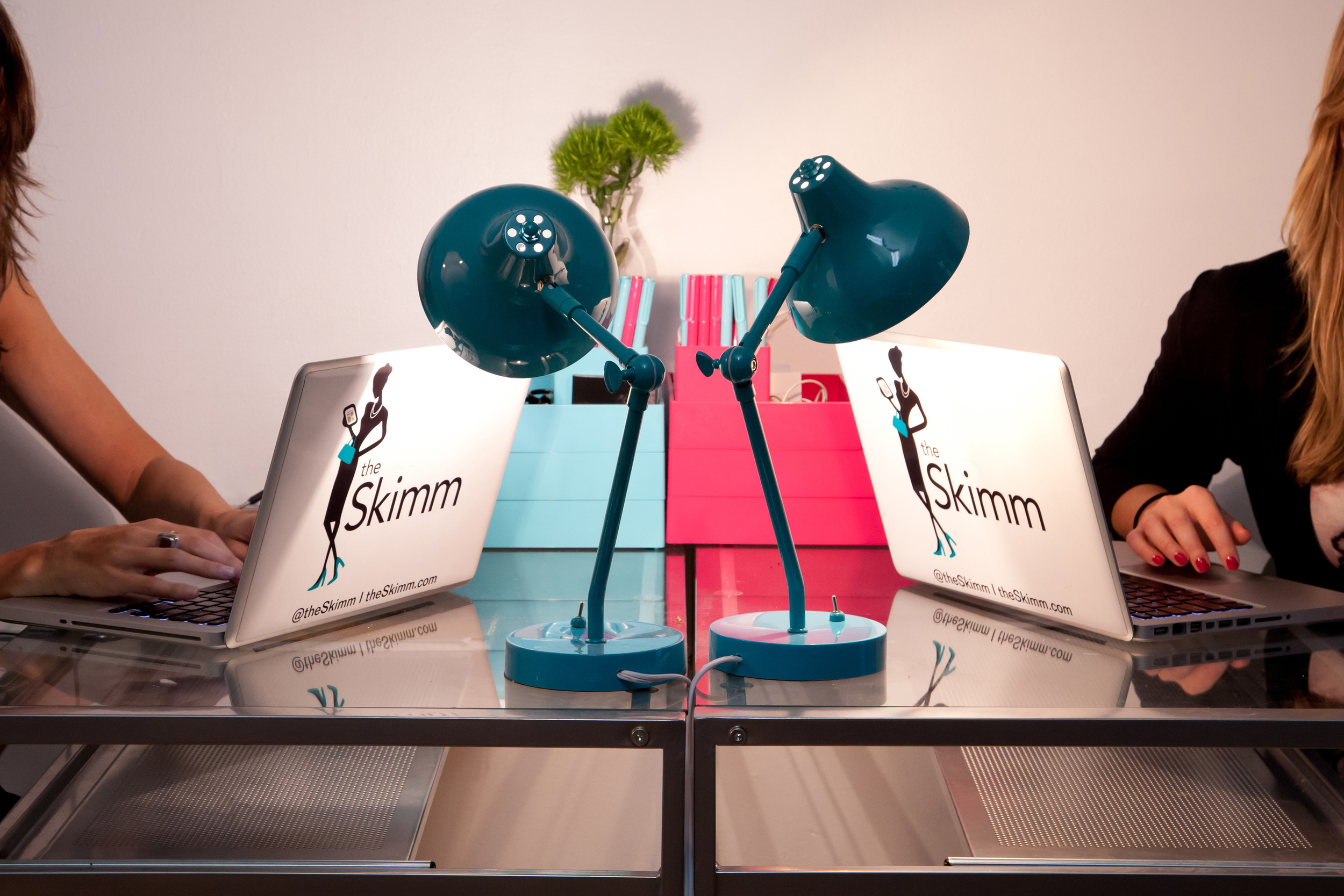 Clean lines and preppy pops of color create a sleek yet playful office space.